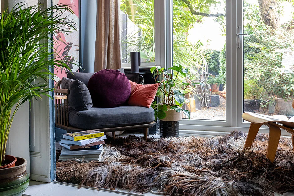 Manouk, mede-eigenaresse van Vacht van Vilt, kwam met het idee om een mooi groot vloerkleed voor mij te maken van 100% biologisch wol. En kijk het resultaat hierboven op de foto liggen in onze serre thuis. Bijna een soort “zwembad” aan wol, het is zoveel en zo mooi! Hier wil ik die stapel boeken wel in lezen op de grond terwijl de regen tegen het raam tikt, zie jij het ook al voor je? Heerlijk! En als klapper, ik mag een mooie vacht weggeven t.w.v. € 200,- Lees hieronder snel verder.