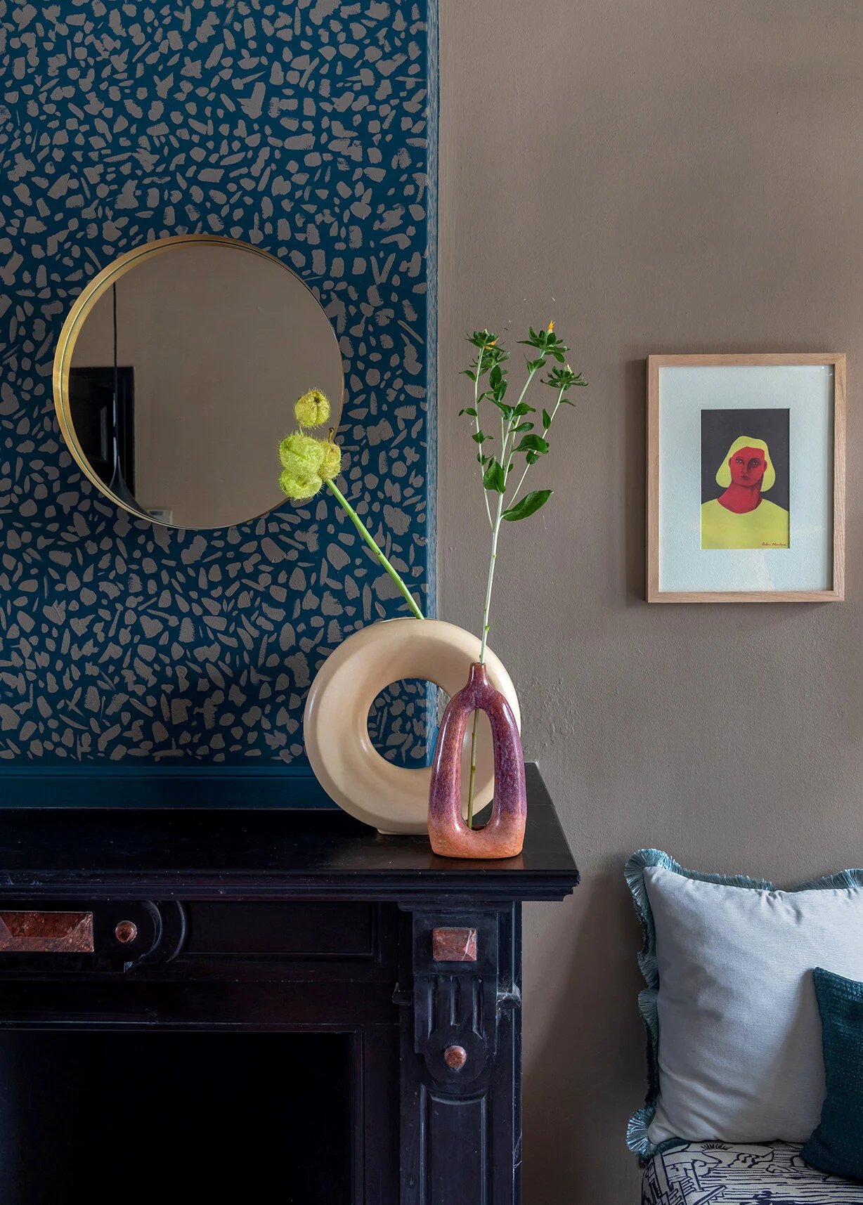 Het gaat natuurlijk om smaak, maar het is ook leuk dat je je laat verrassen door de vormgeving van keramiek. Wat ik in deze twee settings thuis heb gedaan is de vormen te combineren. De ronde vaas in een zacht hele afwerking geeft een prachtig contrast met bijvoorbeeld de donkere kleur van de muur. En als je hier het slanke Bloomingville vaasje ervoor plaats creëer je contrast. Om extra accent te geven kan je met bloemen veel doen. Met slechts een paar euro aan bloemen maak je bijvoorbeeld je schouw, dressoir of bureau heel feestelijk!