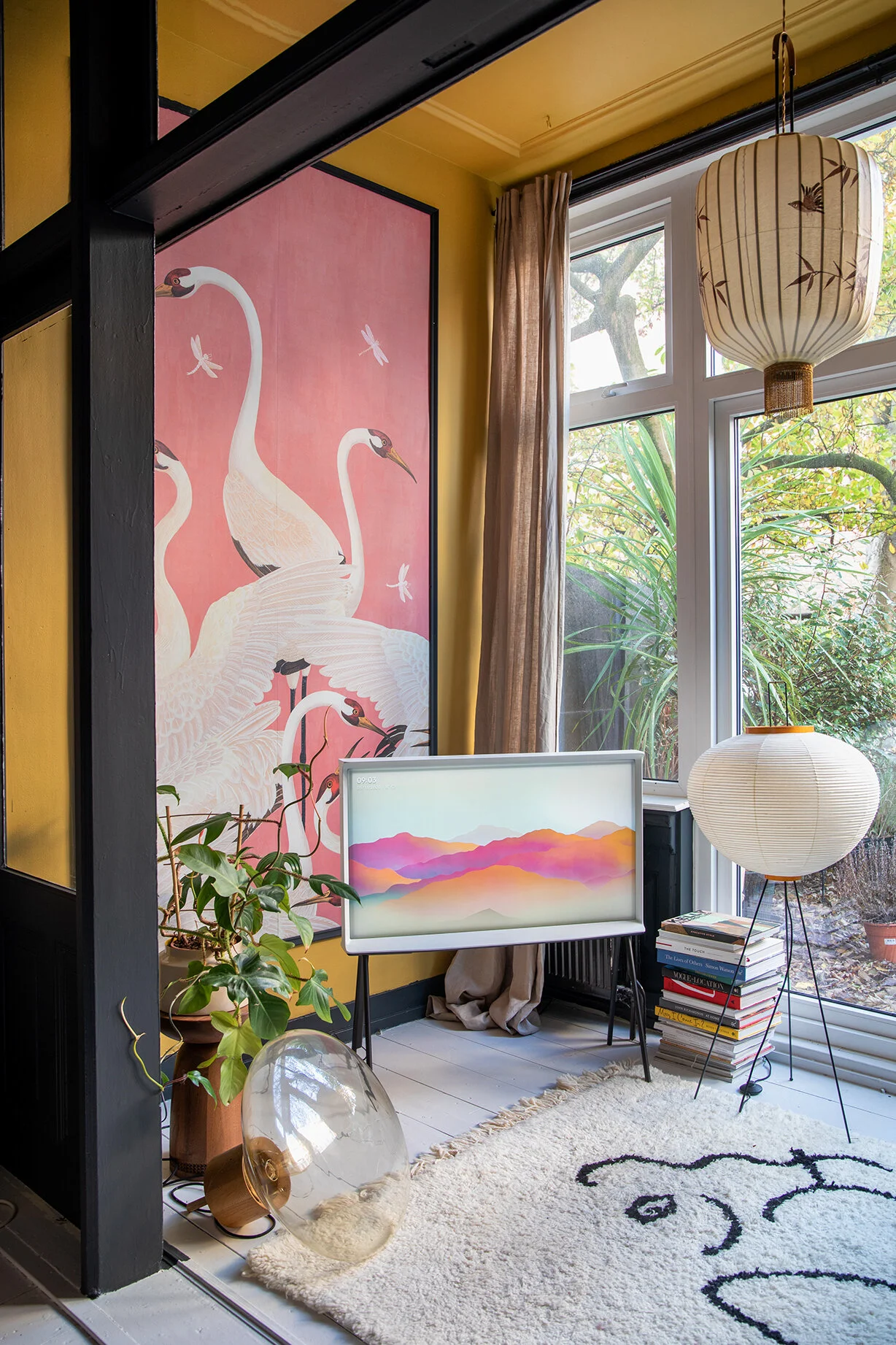 Is het een TV? Of is het een mooi design object. Eigenlijk is The Serif beide. Ik word zo blij van deze Samsung televisie. Een platte TV die prachtig is afgewerkt op stalen zwarte pootjes, het is hierdoor een sierraad in huis. En belangrijker nog: ik kan de TV eenvoudig verplaatsen! Jelle en ik kijken (live)TV via een internetverbinding, dus er gaat ook maar één zwart snoer naar het stopcontact, voor de rest niks! Je kan mij niet blijer maken én ja… mijn opdrachtgevers voor particulieren interieur projecten hebben straks denk ik ook een Serif in de woonkamer staan. Want ik zorg er altijd voor dat je kan wisselen in huis met je indeling. En daar helpt deze TV met prachtig beeld en geluid zeker bij. En wil je nu niet naar een zwart scherm kijken als je geen TV kijkt? Dan kan je allemaal mooie afbeeldingen als ‘screensaver’ gebruiken met Ambient mode. Dit kan natuurlijk ook een eigen foto zijn van vakantie, familie of je huisdier :-)